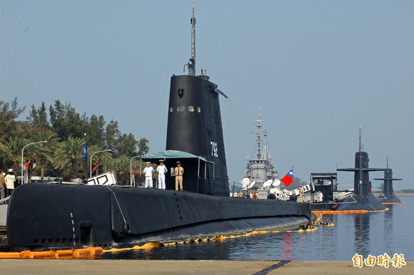 圖中前為服役進入第六十六年的海豹潛艦,後方二艘為服役近廿五年劍龍級潛艦。(資料照,記者許紹軒攝)