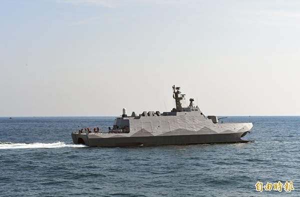 國人自製飛彈巡邏艦「沱江艦」23日舉行交艦典禮,正式移交海軍。(記者簡榮豐攝)
