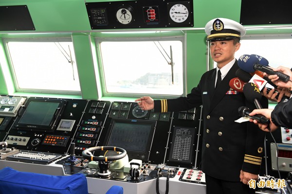 艦長介紹駕駛台裝備。(記者簡榮豐攝)