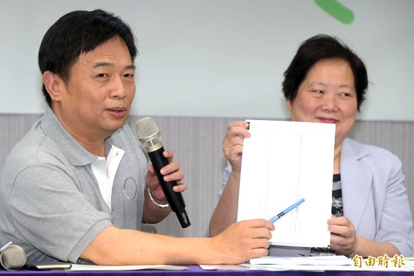 蔡英文競選總部執行總幹事林錫耀(左)17日率同相關部門主管召開記者會,公佈蔡英文競選總統政治獻金結算表。(記者王敏為攝)
