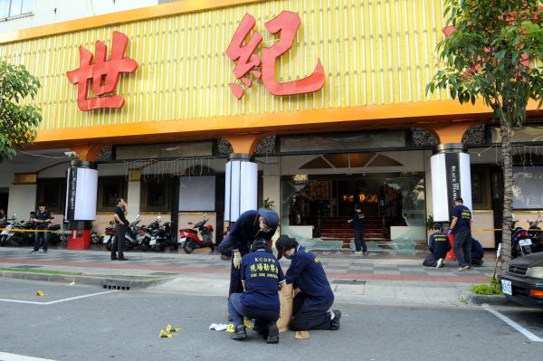高雄市新興區新世紀舞廳日前遭人開槍掃射,現場找到13發彈殼,並有一把制式手槍,歹徒開槍洩憤後開車離去,又到美術東四路開槍犯案。(資料照,記者張忠義攝)
