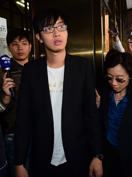 無黨籍台北市長候選人柯文哲陣營控辦公室被竊聽案,柯辦人員彭盛韶上午至北檢說明案情。(記者羅沛德攝)