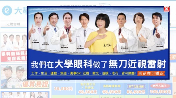 吳淡如代言大學眼科,患者認為療效不如預期,控她詐欺。(圖擷取自大學眼科官網)