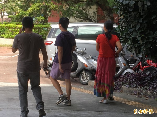 被害女老師(右)由校方人員陪同到派出所報案,警方依傷害案受理偵辦。(記者佟振國攝)