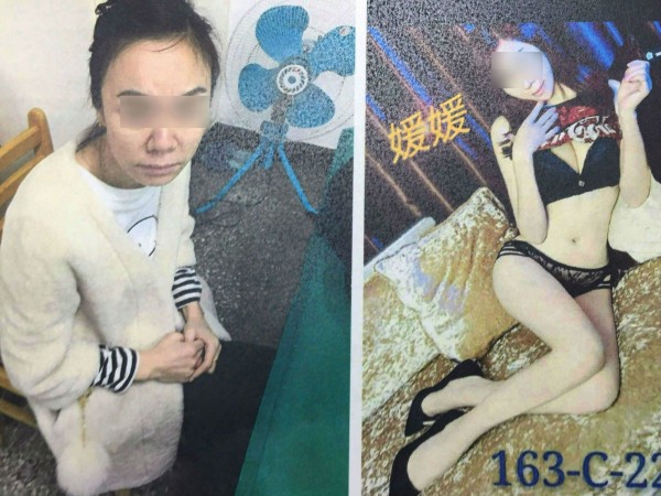 中國籍賣春女郎本人(左)和宣傳照相比簡直天差地遠。(記者劉慶侯翻攝)