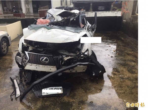 肇事車輛嚴重扭曲變形。(記者廖淑玲攝)