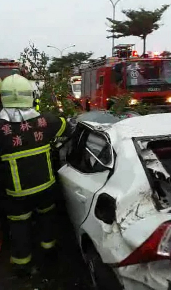 由於撞擊相當猛烈,現場怵目驚心,許男駕駛的車輛更是嚴重扭曲變形,加上安全氣囊爆裂,許男被擠壓在車子裡,經消防隊出動油壓剪破壞車體才救出緊急送醫仍宣告不治。