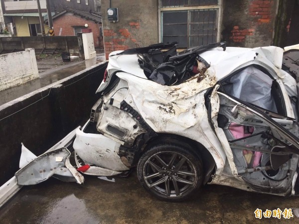 許姓男子所駕駛車輛撞得嚴重扭曲變形。(記者廖淑玲攝)