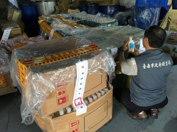台南市衛生局、衛福部食藥署及保七總隊在佳里一處工廠查獲洗髮精原料、半成品及成品。(記者邱灝唐翻攝)
