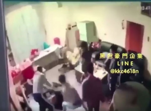 今天有人在臉書「黑色豪門企業」po出一段影片,畫面中出現10餘人,有人坐在沙發上,7、8名男子則站著圍觀,一名白衣男子先用腳多次重踹躺在地面的一名男子,另3人隨後即跟著白衣男子,手持棒球棒等棍棒狂毆躺在地上的男子,並輪流以腳重踹男子,男子痛苦地躺在地上發抖,眾人隨即離去。