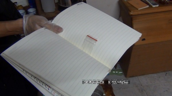警方在筆記本內查獲毒品。(記者林宜樟翻攝)