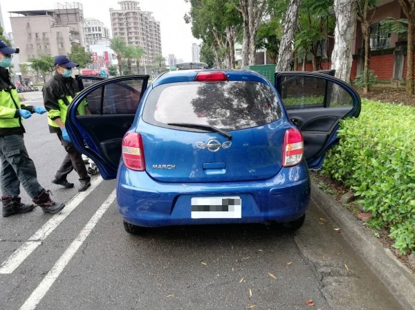 小轎車違規臨停在路邊,女車主被發現在車內燒炭身亡。(記者曾健銘翻攝)