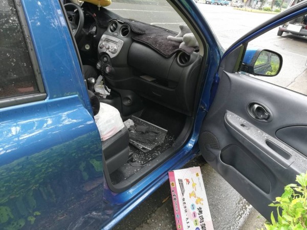副駕駛座上有燃燒殆盡的炭盆。(記者曾健銘翻攝)