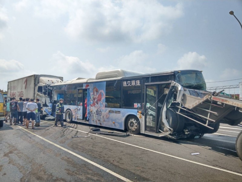 中市沙鹿「死亡下坡」3車追撞 拖板車插破公車車頭