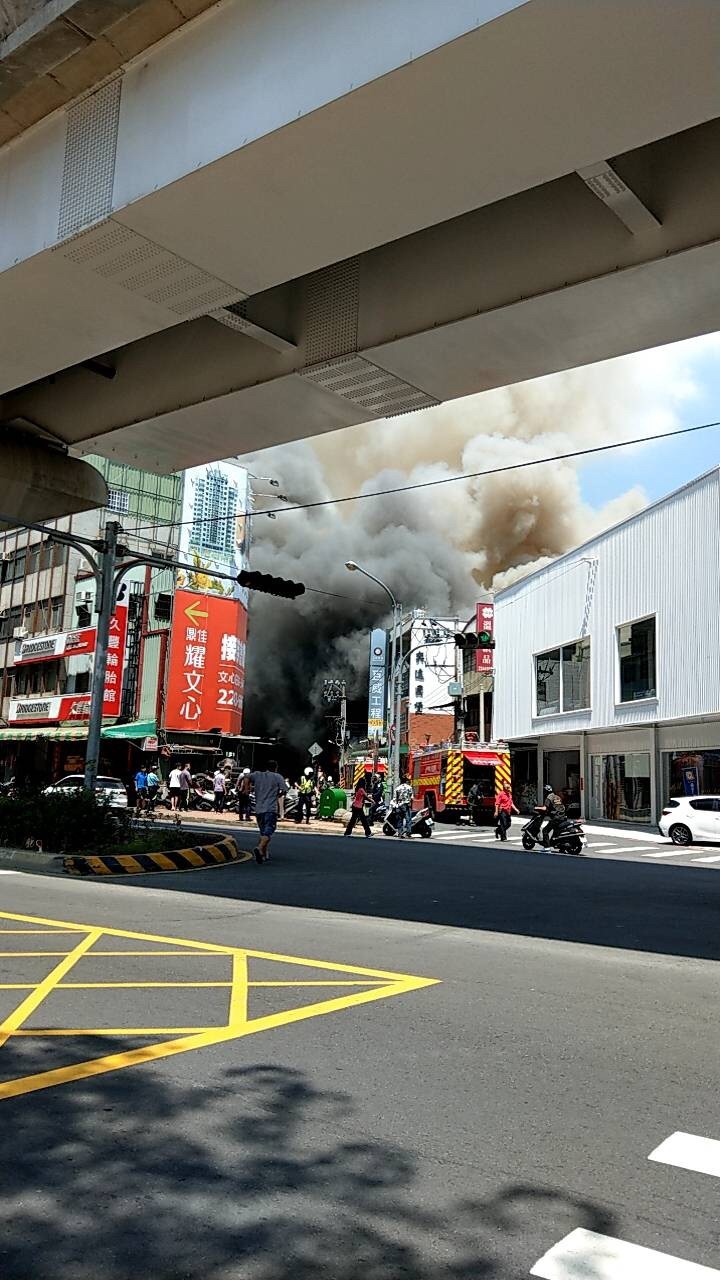 這起火警發生在中午近1點,位在北屯區北屯路上的電鍍工廠突然傳出火警,消防局獲報緊急派遣第八大隊與北屯、文昌、頭家厝、大誠、四平及東山等分隊,動員各式車輛14部、人員41名到場灌救,只見大量濃煙及火舌不斷自鐵皮工廠竄出,還經由冷氣孔延燒到隔壁5戶透天厝民宅的頂樓。