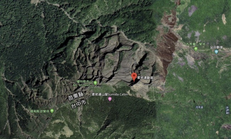 台中市一支登山隊伍昨天行經知名的素密達斷崖時,一名隊員不慎摔落山谷,現已證實死亡。(圖擷自Google地圖)