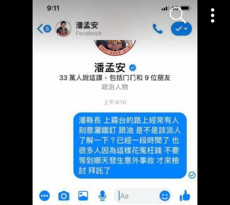 車友上潘孟安臉書反映霧台釘子多 鄉長促查誰在傷害觀光