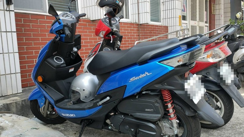 蔡男偷得2紅包18萬,還買機車(圖中藍色車)代步。(記者彭健禮翻攝)
