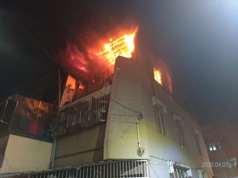 第1梯消防人員於晚間7點45分趕抵,隨即佈水線往3樓滅火,同時以1水線阻隔火勢往鄰居延燒,幸控制得宜,火勢並未延燒鄰戶,於晚間7點55分控制火勢,不久即撲滅大火。消防人員檢視失火位置是3樓加蓋鐵皮屋的佛堂,燃燒面積約15平方公尺,無人受傷。屋主向消防員表示,幸好是對面鄰居通知其住宅3樓失火,才得以及時逃出,不必通報財物損失、也不需要做火場鑑定調查。