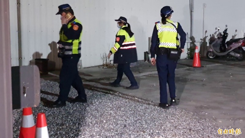 花蓮縣吉安鄉和平路上一間餐廳昨晚間發生砍人案件,警方到場蒐證。(記者王錦義攝)