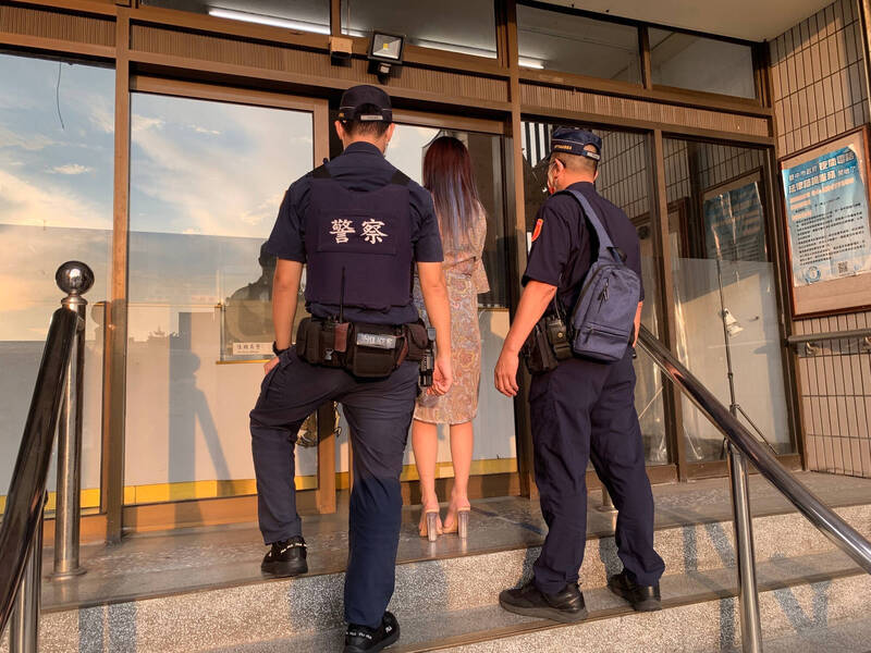 警方帶回檳榔西施。(警方提供)