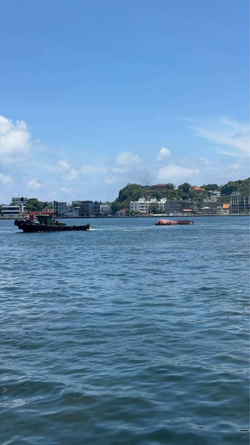 旗津海域今天發生工作船翻覆意外。(民眾提供)