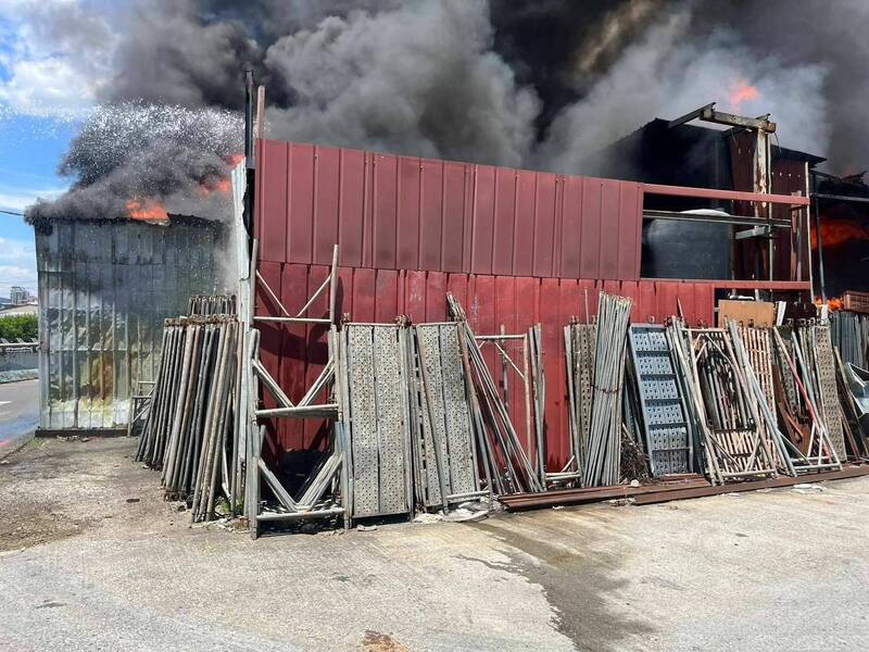 新北市土城區延吉街23巷1日10點47分許發生工廠火警,環保局醒民眾注意空污。(新北市環保局提供)