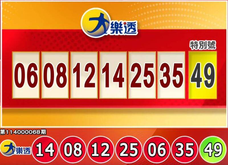 大樂透:06、08、12、14、25、35,特別號:49。
