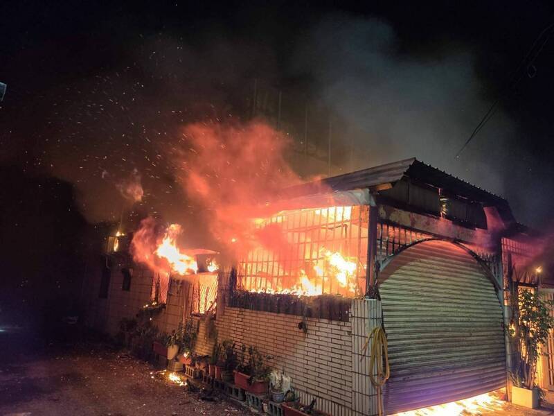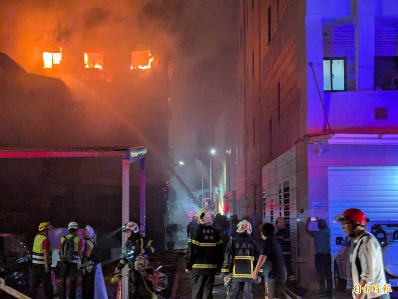 嘉市民宅發生火災,消防員漏夜搶救撲滅。(記者王善嬿攝)