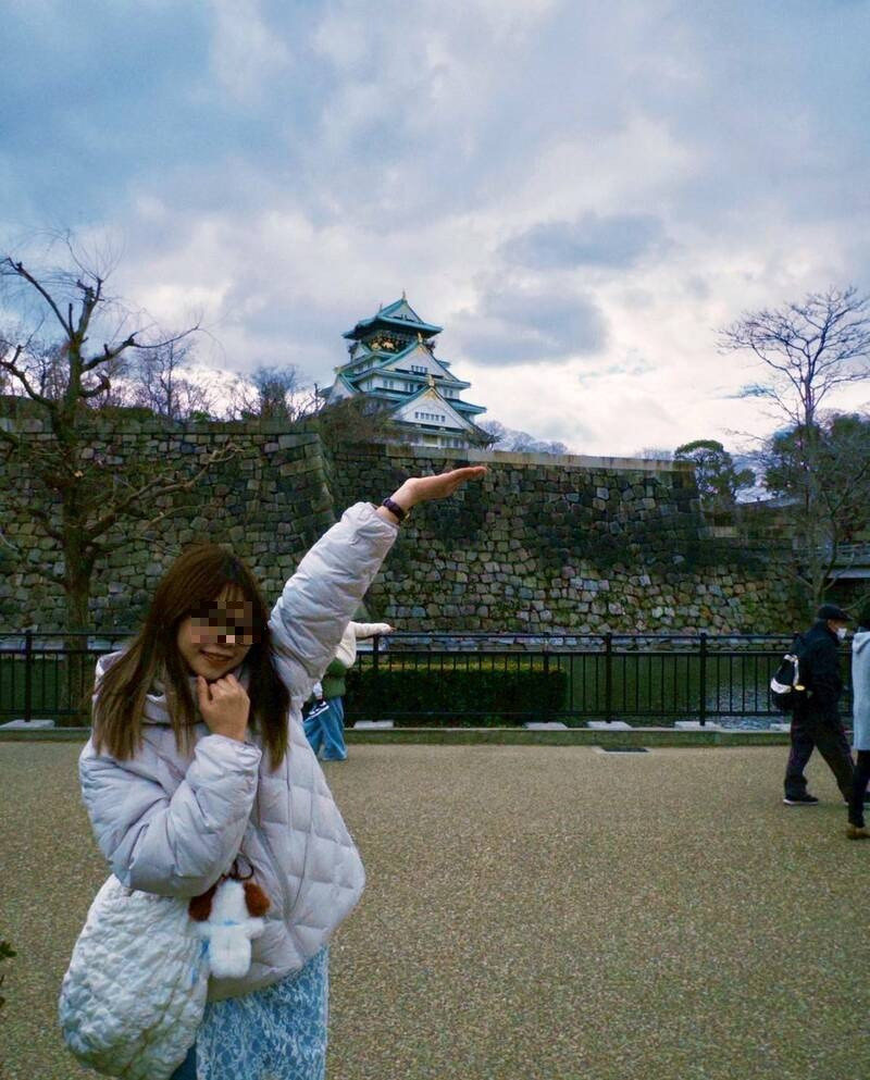 桃園市呂姓女大學生騎車出門打工途中,慘遭遊覽車撞擊輾壓身亡;生前出國遊覽燦笑模樣令人不捨。(圖由家屬提供)