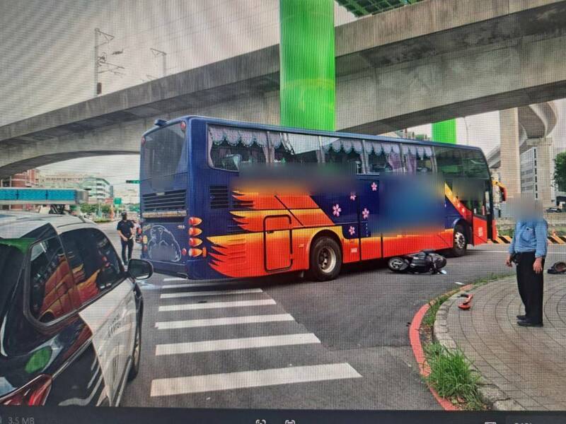 呂姓女大學生遭遊覽車撞擊輾壓車禍現場。(記者余瑞仁翻攝)