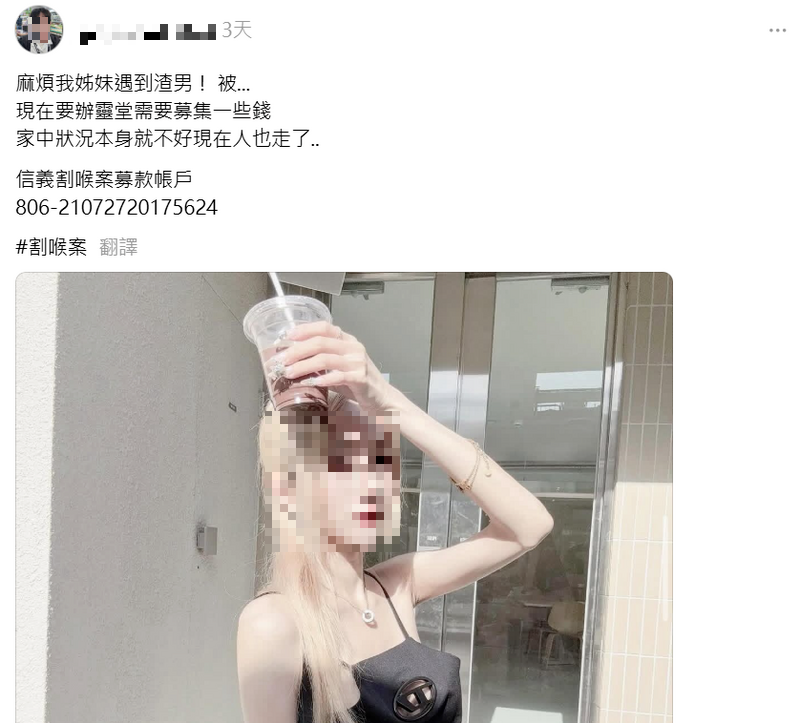 女公關遭割喉亡 網募款稱「1元也是愛心」 家屬急澄清:是詐騙