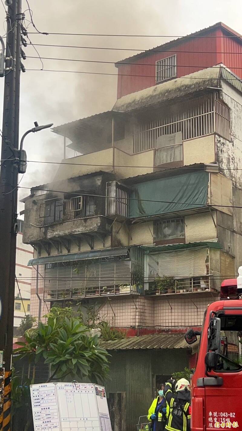 基隆市信義區東信路3樓民宅今天下午發生火警。(記者林嘉東攝)
