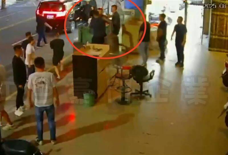 沒想到,對方下一波攻勢又朝鄭朝名攻擊,就連他躲到泊車櫃檯,藍衣男氣到從後方拿安全帽K頭,一連猛K好幾下。