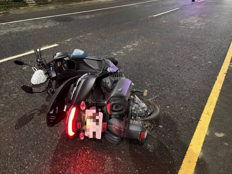 機車疑似輾過水泥塊倒地,送醫宣告不治。(讀者提供)