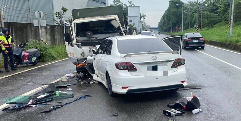 疑天雨路滑衝對向小貨車。(讀者提供)