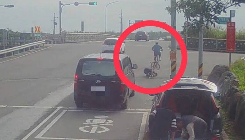 影片曝光!女單車騎士宜蘭慘摔提國賠 後方車1家4口熱心幫忙被讚爆