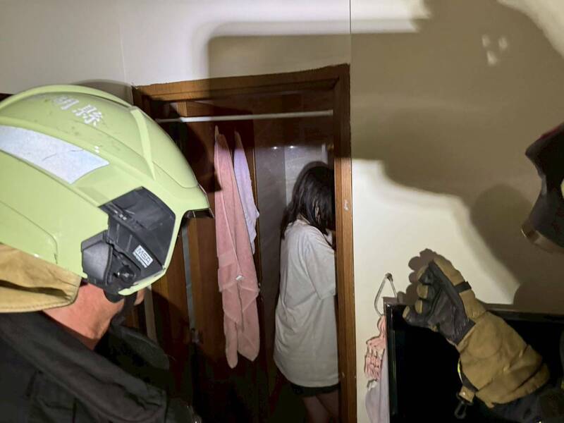 女子向澎湖縣政府消防局報案,指稱鄰近女住戶受困浴室。(澎湖縣政府消防局提供)