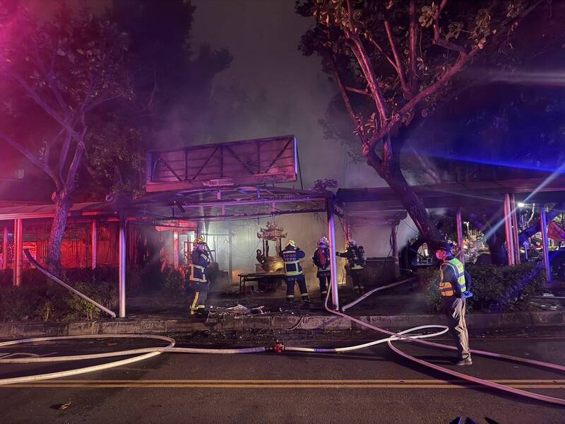 消防人員立即架設水線全力灌救,並同步戒護周邊樹木及公園設施,防止火勢向外延燒,經約12分鐘搶救,火勢於10時50分控制,10時51分完全撲滅,所幸無人員傷亡,據了解,起火建物為一樓磚造鐵皮結構,內部堆放雜物及神像,燃燒面積約10平方公尺,至於起火原因,正由火調人員進一步調查中。