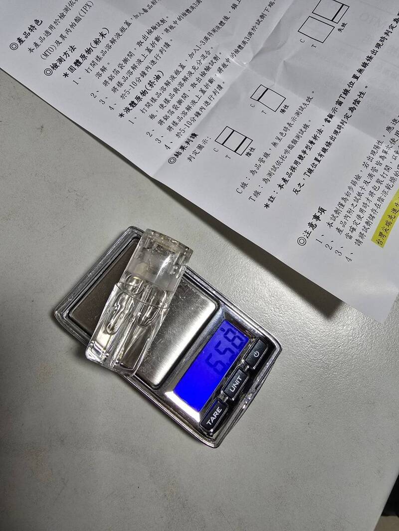 肇事者詹男經毒品唾液快篩呈陽性反應,中和警方還搜出一顆依託咪酯煙彈。(記者鄭景議翻攝)