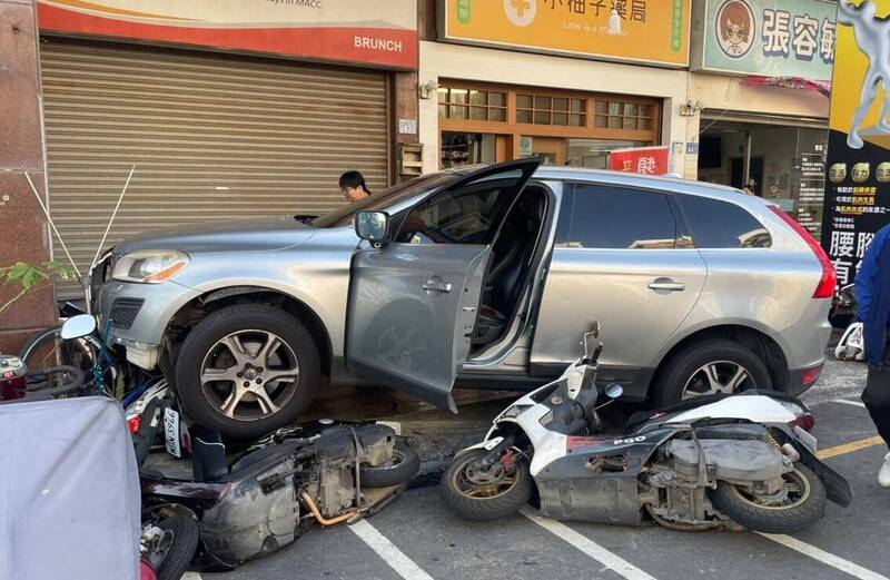 鹿港警分局表示,這起自撞意外發生在鹿港中正路、鹿基醫院對面的公寓大樓,蒲男(66歲)駕駛自小客車由西往東方向行駛在外側車道,自稱因為頭暈目眩才會撞進騎樓,撞倒5部機車,還造成大樓的地下室逃生口受損。