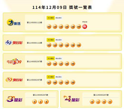 確切中獎號碼以台彩網站公告為主,請見「台灣彩券網站」。