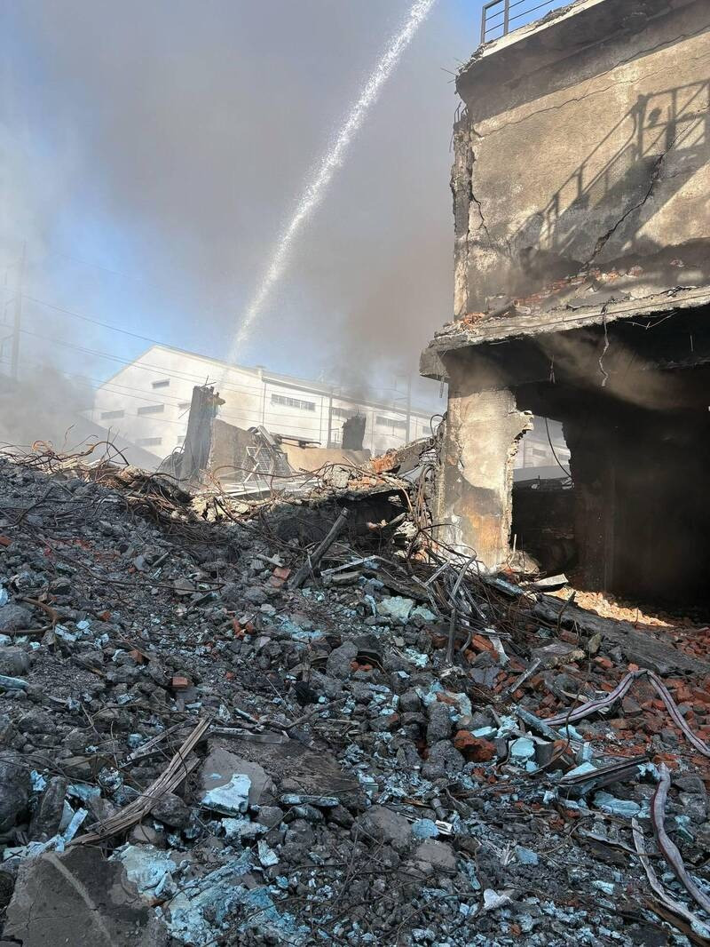 高市消防局持續在現場處理殘火。(民眾提供)