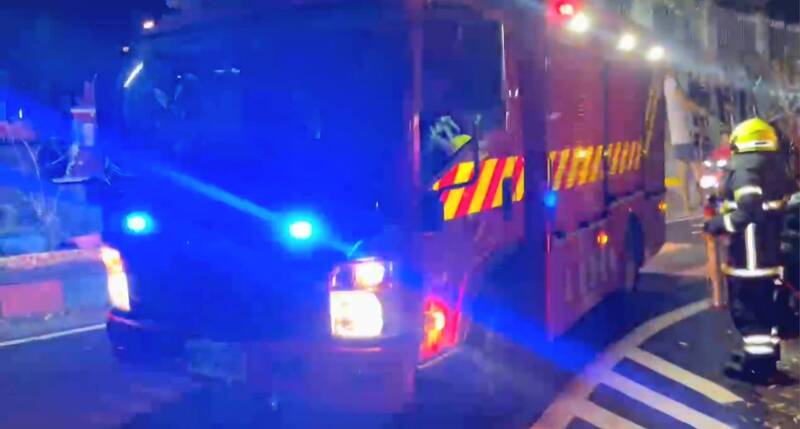 南投縣信義鄉地利村16日晚間發生雜草火警,地利消防站出動小型水箱消防車滅火。(南投縣消防局提供)