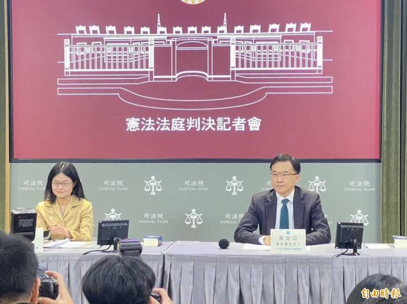 司法院今下午3時由憲法法庭書記廳廳長許碧惠、新聞及法治宣導處處長兼發言人吳定亞召開記者會。(記者楊心慧攝)