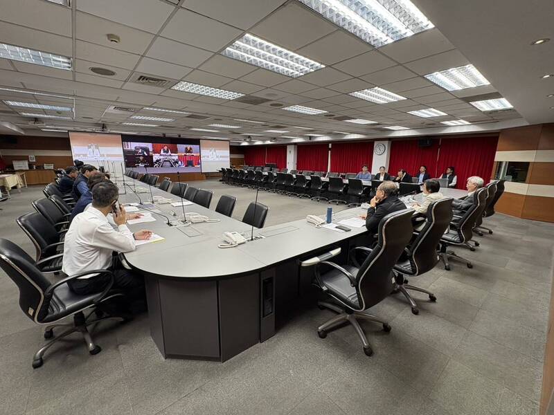 內政部長劉世芳(中)今日下午至警政署,偕同警政署長張榮興(左)與六都警察局長召開視訊會議。(記者鄭景議翻攝)