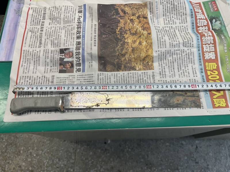陳男因機車上放置30公分長柴刀,被依無故攜帶刀械以社維法送辦。(民眾提供)
