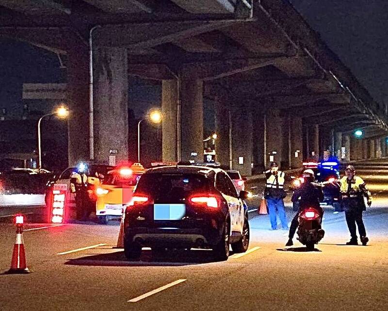 冷氣團南下,台中警方在龍井西濱快速道路下方稽查改裝車。(讀者提供)