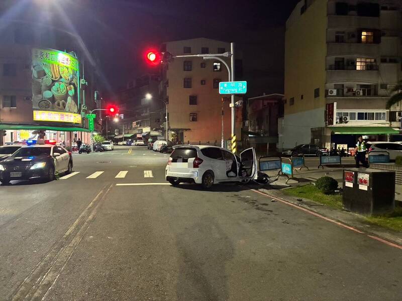 前鎮分局一心所凌晨1時40分許獲報於英明路發生一起交通事故,員警立即趕赴現場管制處理避免二次事故發生。