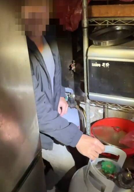 賭客躲在冰箱與瓦斯桶後方仍被逮。(警方提供)
